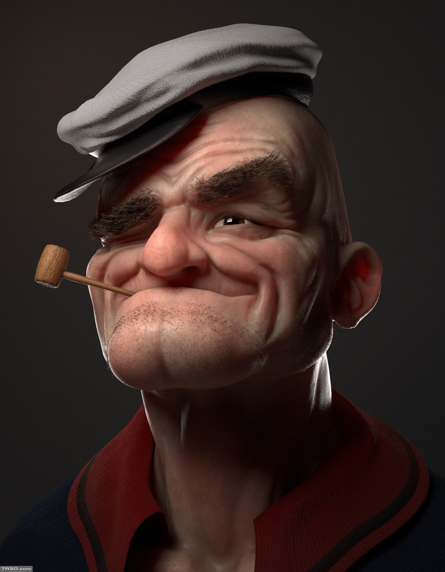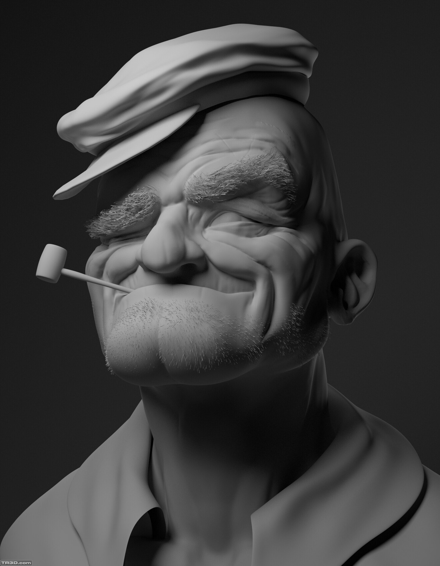 Had so much fun with this sketch. Painted some skin in substance (still trying to figure out polypainting in zbrush) fiber mesh for the fuzzy brows and shaved beard. Rendered in maya with redshift.