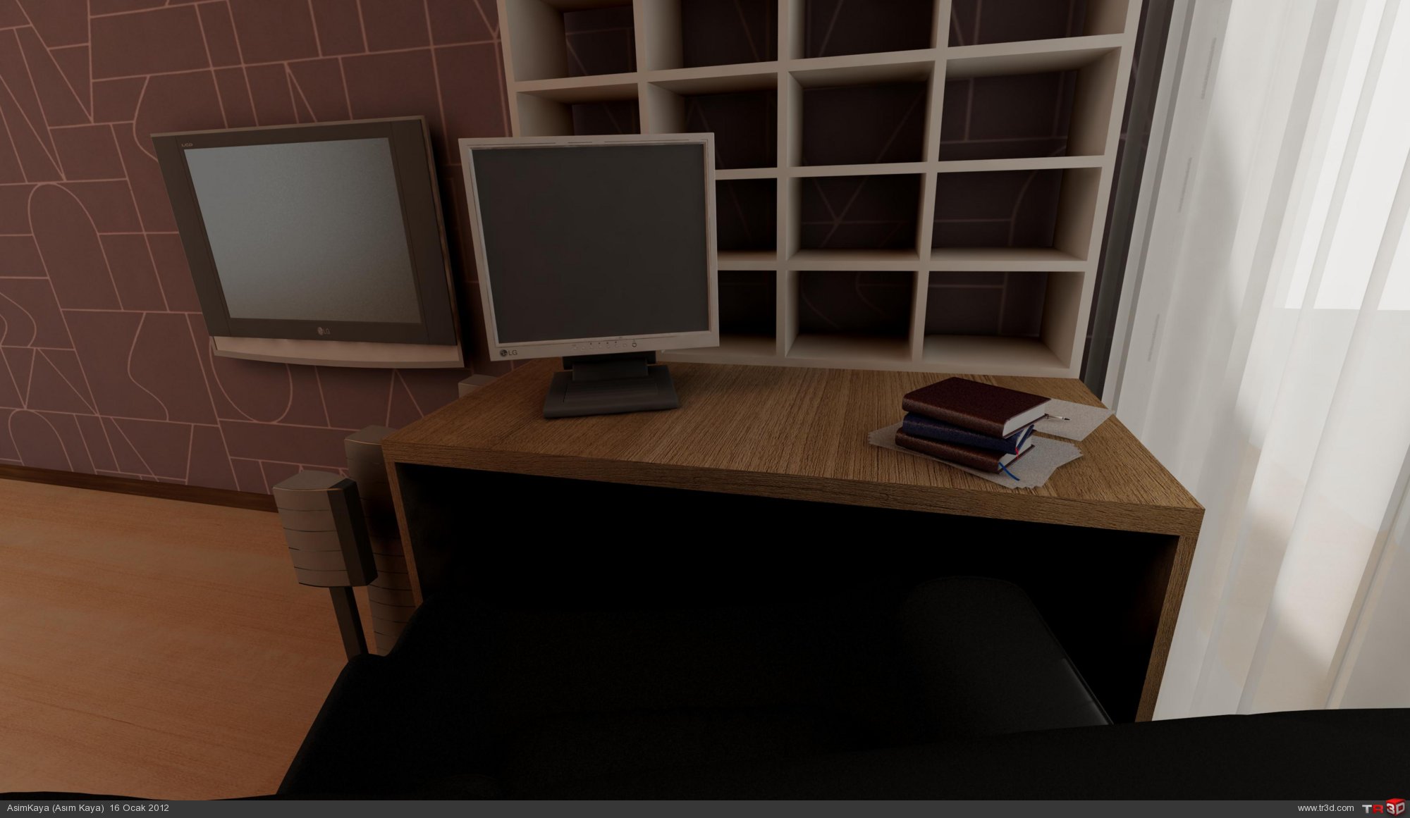 Çalışma güzel görünüyor.Fakat ergonomik olarak odanın dekorasyonu biraz ters geldi bana.fikrimce plazma ve çalışma masasının yerleri değiştirilirse daha güzel olur diye düşünüyorum.Elinize sağlık
