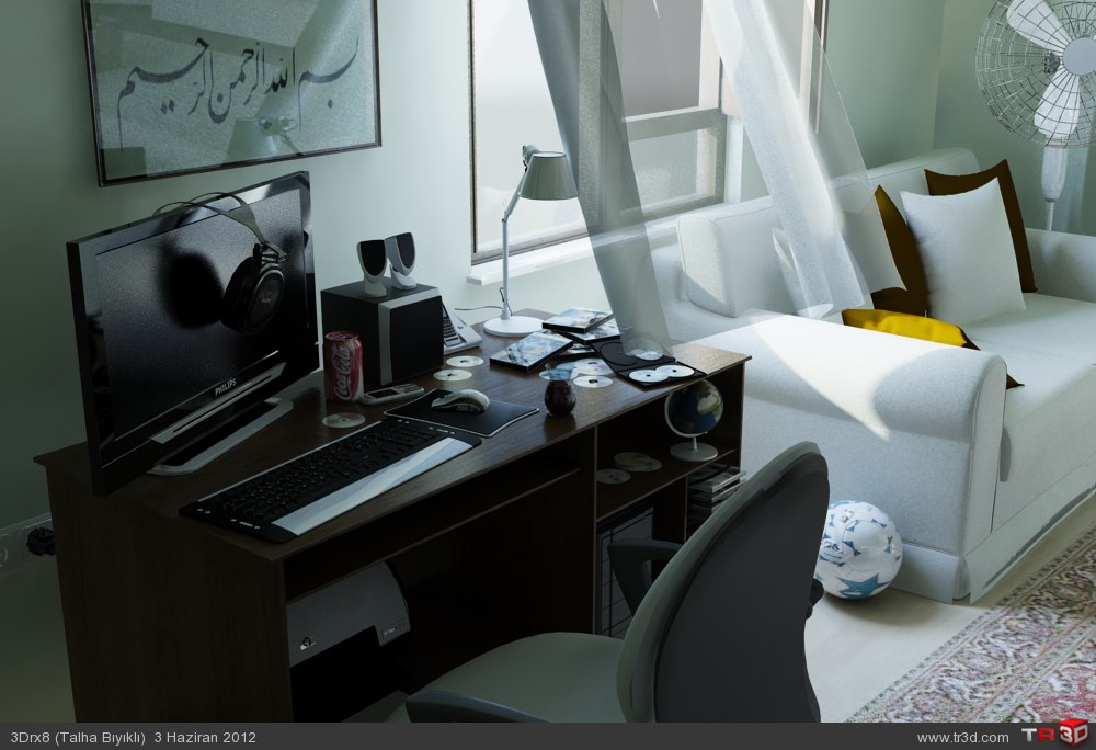 Modellemek yaklaşık 2 saat sürdü. Sahnedeki bir iki şey hazırdır.Render işlemi yaklaşık 1 saat sürdü.