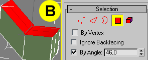 By Angle: Alt objelerden sadece Polygon seçeneğinde aktif olan bu kutucuk seçildiğinde verilen açı değerine göre tıklandığımızda polygona en yakın polygonları seçmektedir.Uygulama A resminde Açı değeri 45 iken seçtiğim yüzeye açılı duran yüzey seçilmedi.B resminde ise seçmiş olduğum yüzeye açılı kenar 46 derece olduğunda seçildi.İki yüzey açısı 46 derece olduğundan seçim işlemi gerçekleşti. ![]() |