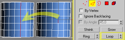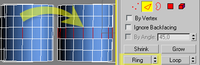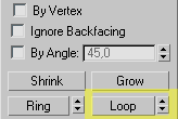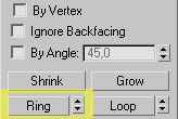 Ring: Edge ve Border´da aktif olan bu seçenek ile seçili kenera paralel kenerları seçme işlemini sağlar.3ds Max 8 ile gelen bir özellik ise Spinner´ların eklenmesidir.Spinnerlar ile seçmiş olduğumuz kenara paralel diğer kenarları sıralı olarak değiştirmemizi sağlar. |