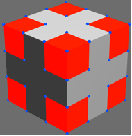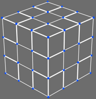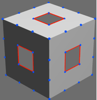 Vertex (nokta): Obje üzerindeki noktaları seçmemizi sağlamaktadır. Resimdeki kutu üzerindeki mavi noktalar vertex(nokta)lardır. |