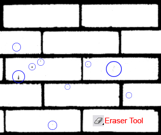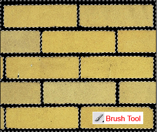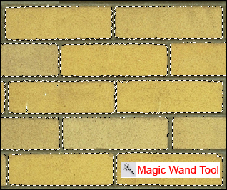 Yukarıdaki asıl resmi photoshopta açıyoruz. tuğla´ları Magic Wand Tool yardımıyla shift´e basılı tutarak seçiyoruz, daha sonra Select>Invert dediğimizde resmimizin boşlukları seçilmiş alan haline gelir.