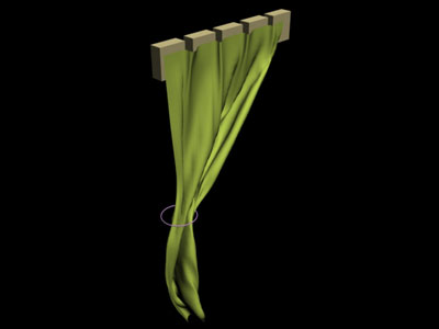 Aşağıdaki gibi perdenizi toplamak isterseniz ilk olarak perdeyi içine alacak büyüklükte bir Torus oluşturun. Ardından Torus un Pivot noktasını Torus un soluna taşıyın. Torus seçili iken Reactor panelindeki Create Deforming Mesh Collection butonuna tıklayarak Trous u Deforming Mesh koleksiyonuna ekleyin, Unyielding ve Concave Mesh i aktif edin. Torus a 100 framelik basit bir Scale animasyonu uygulayın...