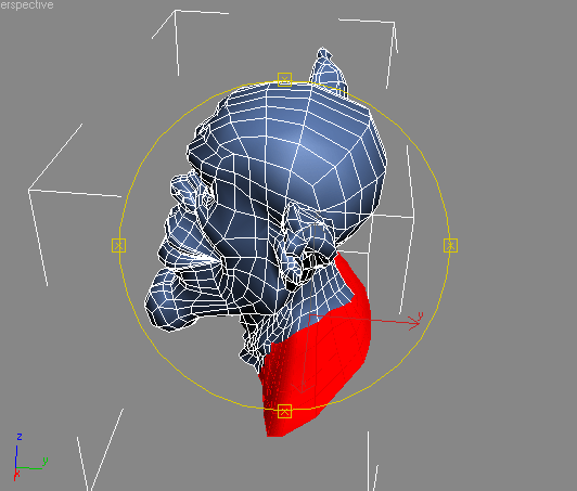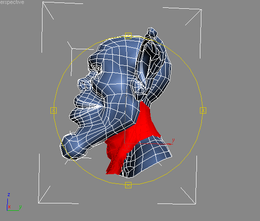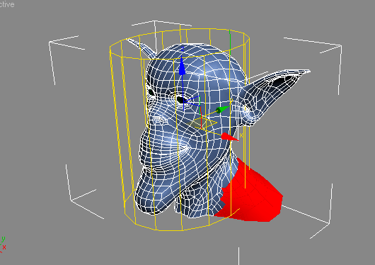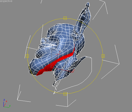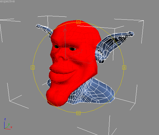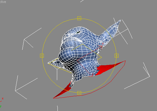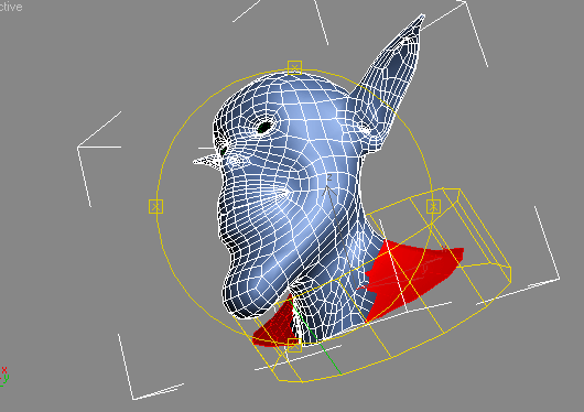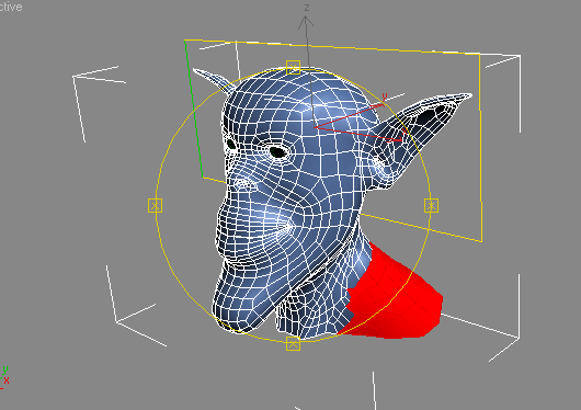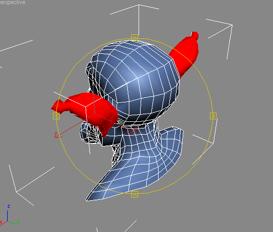 |    Artık iki kulak üst üste bindi. Seçerken fareyi noktaların dışına tıklayıp sürükleyerek seçmelisiniz. çünkü artık 1 değil iki nokta mevcut. Kulakları seçip Scale Horozintal arcı ile yatay eksende genişletiyoruz. |