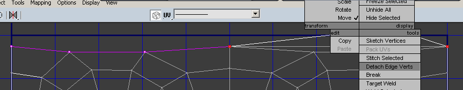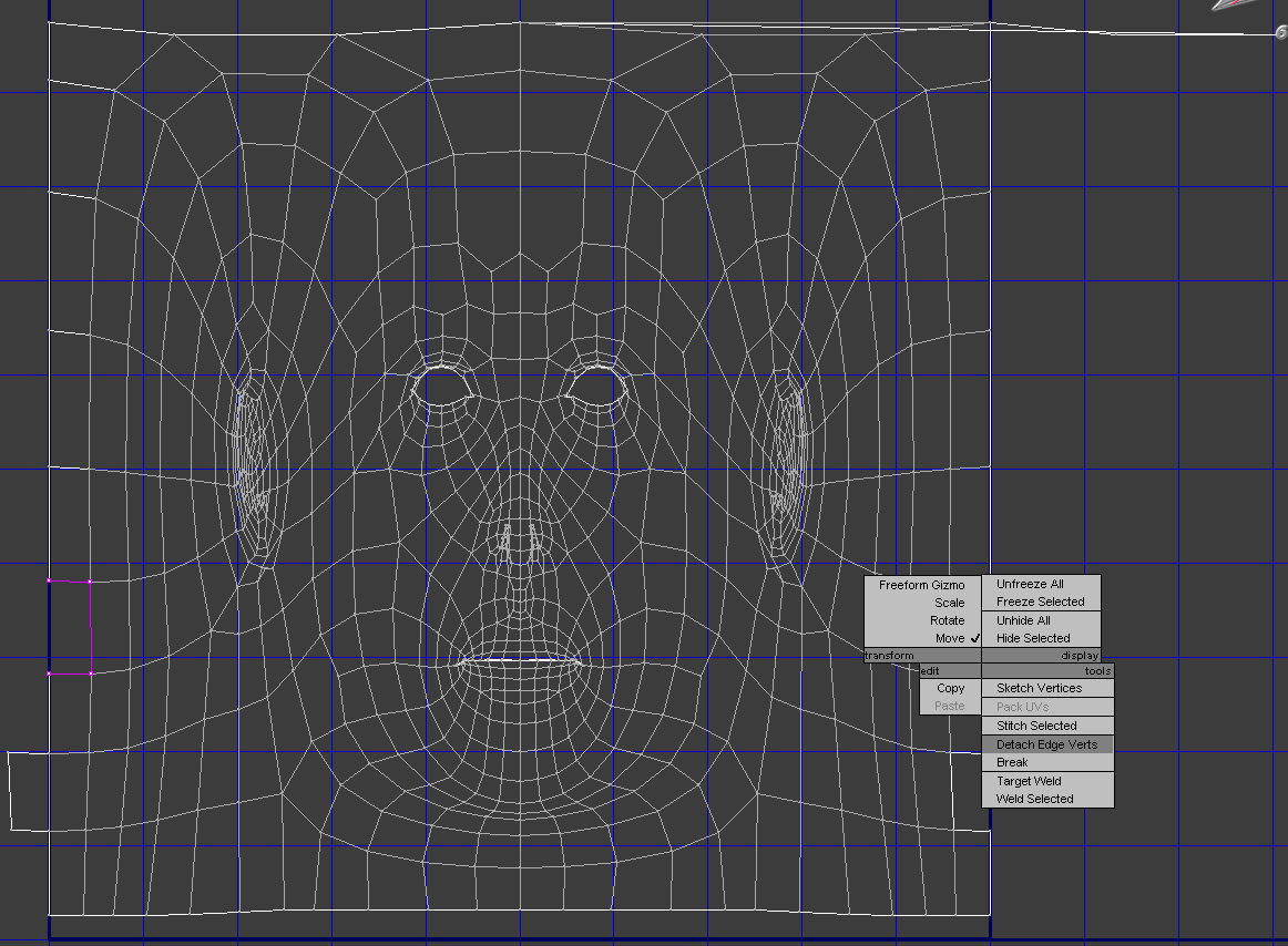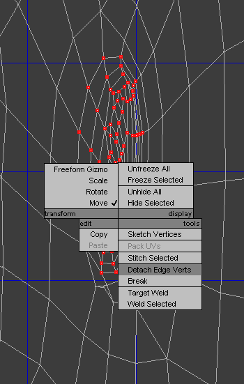 |  Sağ kısımdaki parçayı seçip sağ tıklıuoruz. Detach Edge Verts dedikten sonra bu parçanın bulunduğu yerden ayrıldığını göreceksiniz. |
