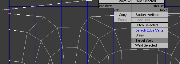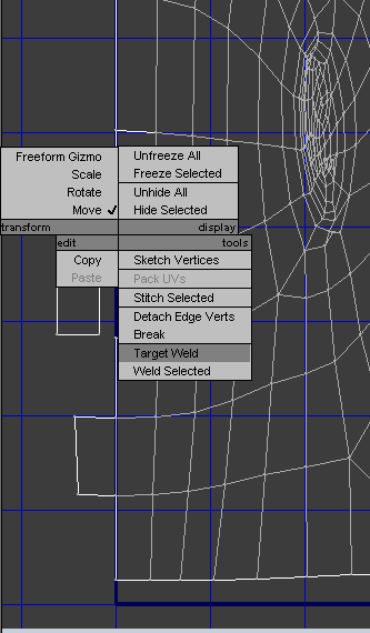 |      Bu parçayı diğer tarafa taşıdıktan sonra sağ tıklayarak bu sefer Target Weld seçeneğini seçiyoruz. bu noktaları birleştirmeye yarar. Noktaların nereyle birleşeceğini ise fark etmek zor değil. Seçtiğiniz noktanın birleşmesi gereken yer pembe renkte belli olacaktır. Noktayı secip bu pembe noktanın üzerine sürükleyip bırakıyoruz. |
