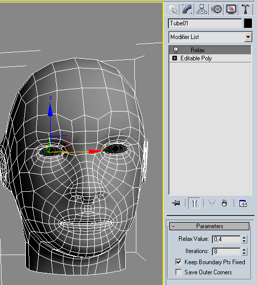 |    Relax ile modelimizi şişiriyoruz. Aslında bu modelde böyle bir şeye gerek yok. Çünkü girft noktaları yok. Fakat bazı karmaşık modellerde gerçekten çok yardımcı olacaktır. Relax nesneyi şişirdiği gibi, modelimizdeki çukur, kırışık gibi komplex yerleri düzeltecektir. Buda bize Unwrap UVW de çok yardımcı olacaktır. Burada Relax uygulayıp modeli farklı ID lere bölmeme gerek varmı diye bakıyorum. fakat bu modelde böyle bir şeye gerek yok. |