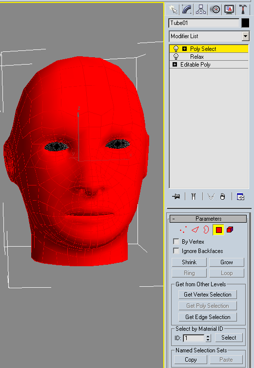 |    Tekrar modelimize Relax Modifierimizi atadıktan sonra Poly Select Modifieri ile 1nci IDyi seçiyoruz. |