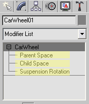 Şimdi sıra geldi dönme yönünü belirlemeye car-wheel nesnemiz modify panelinde ki CarWheel yazısının yanında bulunan + işaretine tıklayıp  (resim 4) açılan menüden ilk parentspace yazısına tıkladıktan sonra üst panellerde bulunan  select and rotate aracını seçelim ve y değerine -90  sonra parent space yazısının altında bulunan child space ye tıklayıp.select and rotate aracı seçiliyken y değerine -90 sayısını girmemiz yeterli olacaktır.Suspension Rotation a değer girmemize gerek yoktur.