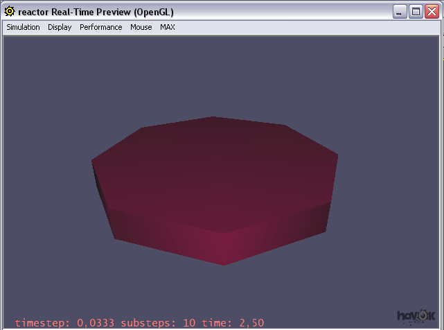 nesnesinin nasıl kullanıldığından kısaca bahsedeceğiz. Hemen perspective penceresine bir cylinder çizelim radius 45,  height 13, sides 8 olsun  bir sekizgen oluşturduk. nesne seçiliyken sol tarafta reactor panelinde  rigid body  nesnesine bir kere tıklayalım şimdi sekizgene sertlik özelliği verdik birde buna ağırlık verelim yine nesnemiz seçiliyken ;
