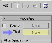 nesnesini seçip sahnemizin görünen bir yerine katalım.Bu nesne seçiliyken modify paneline geçip properties bölümündeki child yazısınınyanında ki ´none´ butonuna tıklayıp (resim 2 gibi) çizdiğimiz nesneyi seçelim.  None yazısının cylinder01 olduğunu göreceksiniz.