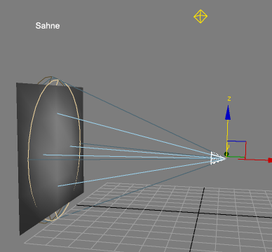 |  | Exponential: Bu kutucuk isaretlendiginde hacimsel isigimizdaki yüksek ve alcak degerdeki parlakliklar arasindaki gecis yumusar. Density: Volume Light´in hacimsel yogunlugunu ayarlamamizi saglar. Deger yükseldikce yogunluk da artar. Max Light: Volume Light´in parlakliginin ulasacagi en yüksek degeri verir. Min Light: Volume Light´in parlakliginin en alcak olacagi degeri verir. (Bu degeri 0,01 bile yapsak bütün sahnenin arka plani Fog Color ile kaplaniyor buna dikkat edin.) Filter Shadows ve Sample Volume: Efekti olusturmakta kullanilan ic ice gecmis katmanlarin sayisini verir. Altindaki dört secenekten birini isaretledigimizde Sample Volume degerinin de buna bagli olarak degistigini görürüz. Bu secenekler arasinda cok da fazla bir fark görülmez. Sample Volume´nin yanindaki Auto kutucugundaki isareti kaldirdigimizda bu degeri kendimiz verebiliriz. Bu sayi arttikca efektin renk gecisleri de daha yumusak görünür, ama render süresini de uzatir. |  Yukarida anlattigim, yogunlukla ilgi ayarlari test edelim. Bu sefer biraz farkli bir sahne olusturalim. Sahnede bir Spot ve bir Plane var. Ayrica genel ortami biraz aydinlatmak icin bir Omni kullandim.