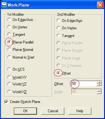 Standart toolbarimizdan ´´Work features-Work plane´´ butonuna tikliyoruz. karsimiza isin temel tasi olan bir dialog kutusu cikiyor biz bu kutucuktan Ençok tercih edilen Sketch Plane ofsetleme bölümünü inceleyecegiz diger kisimler ise yukarda belirttigim ucs tasima ve sketch planeyi ucs üzerinde konumlandirma mantigina kurban gitmektedir malesef zamanla can alici kisimlari tek tek inceleyecegiz.