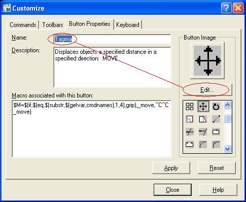 Toolbar ayar kutusu asagidaki gibi degisesecektir.Name yazana kısımda komutumuzun adı bulunmaktadır hemen ´´taşıma´´ olarak değiştirelim.