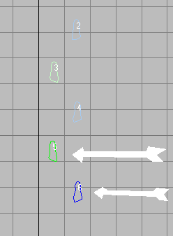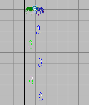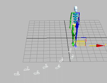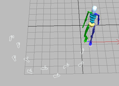 Şimdi hemen kaldığımz yerden ikinci hareket dosyamızı için, daha önce tek ayak simgesini tıkladığımz yerde, ilk başta bulunan "Create footsteps (appends) (yukarıda birinci resim) linkine tıklayarak, üstten gürüş penceresine geçin. daha önce oluşturduğumuz dört adımın devamı olarak tek tek tıklayarak beşinci ve altıncı adımları oluşturun.