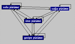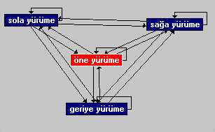 Bu örnek te yine aynı zincir mantığı ile oluşturuldu. Yalnız "Sola dönüş" dosyasında oynama yaparak, ellerini gövdesini bükerek oynayan, oynayarak sola dönen bir dosyayı yerleştirdim. Sağa dönüş dosyasını ise sağa koşarak dönen başka bir dosya ile değiştirdim. Yukarıdaki resimde de görüldüğü gibi biped düz gitmesi gerektiğinde düz gidiyor, sağa dönmesi gerektiğinde koşarak sağı dönüyor, sola dönmesi gerektiğinde elleri ve vücudu oynayarak dönüyor.
