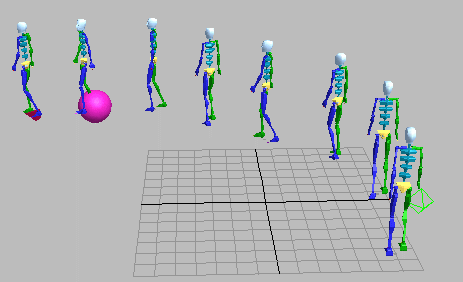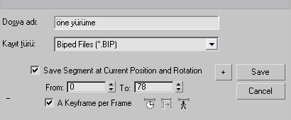 Biped´i bir alan üzerinde öne, arkaya sağa ve sola yürüme ve koşma gibi hareketlendirebilmemiz için en az dört farklı hareket dosyasına ihtiyacımız vardır. Şimdi bu hareket dosyalarını biz kendi ihtiyacımıza göre hazırlayalım. Diyelim ki Biped´in sahnede gelişigüzel dolaşmasını veya bir hedef doğrultusunda gezmesini istiyoruz. Şimdi bunun için gerekli olan birinci hareket dosyamızı oluşturalım;