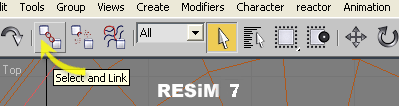 | 7) Hareketlerin olusabilmesi için bazı parcaları birbirine bağlamamız gerekiyor.bunu üst komut çubuğu üzerinde bulunan Select And Link ile gerçekleştireceğiz. ( Resim 7 ) |
