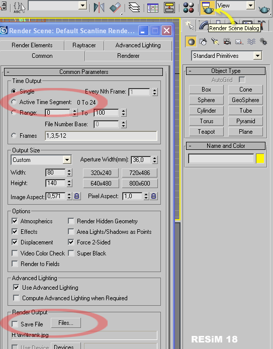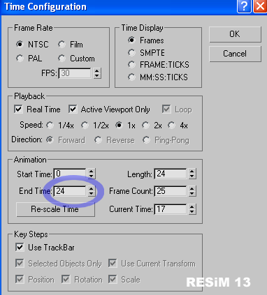 Açılan pencerede Active Time Segment kısmı animasyon kare sayımızdır, seçin. ( Resim 18 )