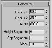 )  çizelim ve Modify panelinden cismimize şu parametreleri girelim
