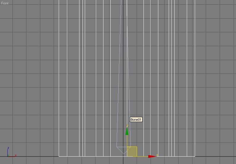 butonunu seçtikten sonra  komutunu seçiyoruz..Bones butonu seçili iken Front penceresine geçip silindirin en alt kısmından yukarı doğru Yükseklik segmentlerine değecek şekilde 5 adet eklem çiziyoruz.
