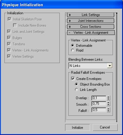 basıp Her bir bonede oluşan sarı çizgiyi Ctrl tuşu basılı iken seçiyoruz ve scalayı büyütüyoruz. Bunun amacı eklemin etki edeceği yüzeyi belirlemektir.Eğer bu işlemi yapmazsanız eklem sadece cismin bir kısmıyla ilişkilendirilmiş olacaktır.  Tekrardan Modify panelindeki Physique seçeneğine tıklayıp Envelope etkisinden çıkın.