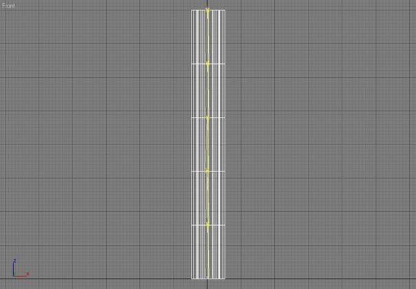 komutunu seçiyoruz..Bones butonu seçili iken Front penceresine geçip silindirin en alt kısmından yukarı doğru Yükseklik segmentlerine değecek şekilde 5 adet eklem çiziyoruz.