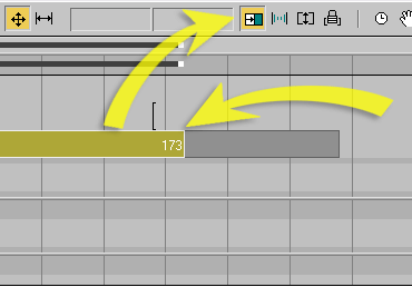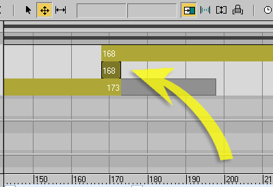 Yukarıdaki resimde en üstteki sarı okla gösterilen "Trim Clips" işaretine tıklayın ve bip dosyanızın üzerine gelin. En sondan geriye doğru itekleyin. Gri olarak geri planda orjinal frame uzunluğunu görürken, renkli olarak da kısalttığınız bölümü görebileceksiniz. Bu işlemleri bu listeye açacağımız bütün dosyalar için yapabiliriz.
