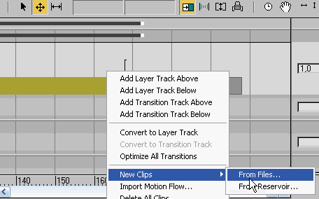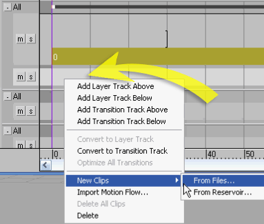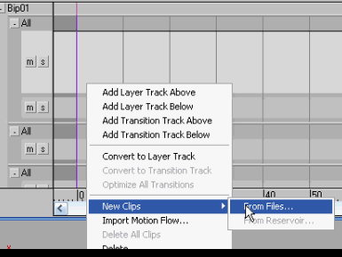 aynı bulunduğumuz yerdeki alanda mausemizle yine sağ tıklayarak bir önceki işlemleri tekrarlıyoruz. Yukarıdaki resimdede gördüğünüz gibi yine "New Clips" ve "From Files" i tıklayarak ikinci .bip dosyamazı çağırıyoruz.