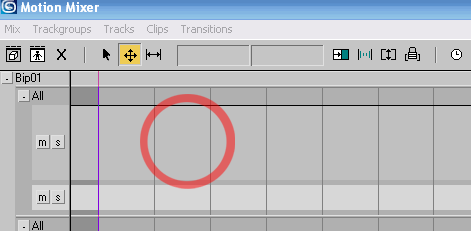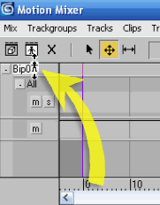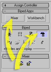 Sahnenize biped´inizi yerleştirin. Ve biped ayarlar bölümündeki yukarıdaki ikinci resimde gördüğünüz "mixer" işaretine tıklayın. Akabinde yukarıda "Mixer" butonuna tıklayın.