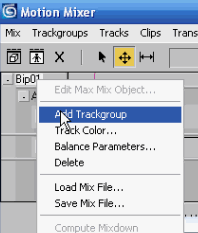Şimdi yukarıda birinci resimde görülen "Bip01" yazılı yere mausenizle gelin ve sağ tıklayın. Yukarıda ikinci resimde gördüğünüz gibi kayan bir liste gelecek ve bu listeden "Add Trackgroup" yazan yere tıklayın.