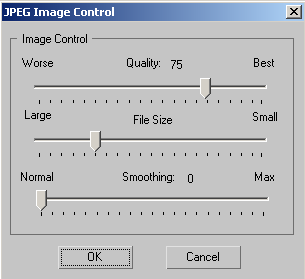 Resim dosyaları kaydederken de karşınıza benzer özellikte bir pencere gelecektir. Burada durum biraz farklıdır. sıkıştırma miktarını siz seçersiniz böylece dosya boyutu ve kalitesi istediğiniz oranda kalacaktır. (Jpeg dosyaları için %75 kabul edilebilir bir kalite ve boyut verir)