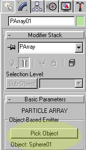 |  | Modifier menüsünde Parray seçili iken aşağıdaki ayarları yapıyoruz, sırasıyla bunların ne amaçla kullanıldığını yazacağım. Pick Object: Bu düğmeye basıp patlamasını istediğimiz cismi seçiyoruz.