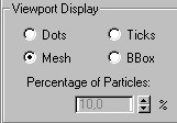 |  | Soldaki ayar sadece max pencerelerinde olayı daha rahat görmemiz için, Burada Dots seçili olsa bile render sırasında cismin parçaları görünecektir. Eğer bilgisayarınız Mesh seçili iken zorlanıyorsa BBox veya Ticks seçmenizde bir sakınca yok.  |