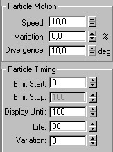 Life:Parçaların yaşam miktarı, aşağıdaki gibi 30 ise parçalar gövdeden çıktıktan zaman çubuğundaki 30 kare boyunca haraket eder sonra yok olurlar