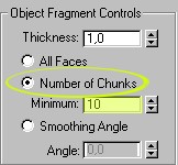 |  | Object Fragment Control: Bu ayarlar patlamada kaç parçaya ayrılacağını belirliyoruz, Zaman çizgisini patlamadan sonra 20 kare ileri götürün ve bu ayara farklı değerler verip parçacıkların boyuna bakın, sizin için uygun olan parça sayısı 10 dan büyük olabilir.  |