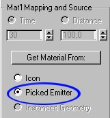 |  | Parçaların nasıl bir kaplama ile kaplanacağını belirtmek için gerekli ayar. icon seçeneği ile farklı bir kaplama seçebiliriz, Picked emitter ise patlayacak olan cisim ile parçaların aynı kaplamaya sahip olmasını sağlar.