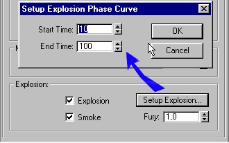 |  | Soldaki ayarlar patlamada oluşacak parçaların hızı ve başlangıç zamanı gibi ayarlardır, burada en önemli olanları: Speed:Parçaların dağılma hızı