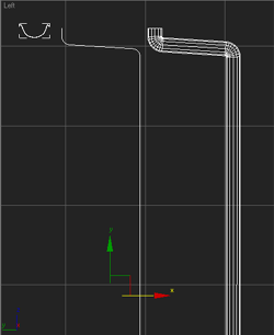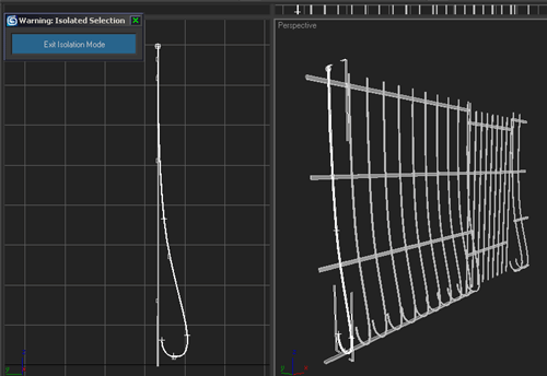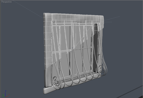 | 12~ Pencere demirleri için "line" kullanıyoruz.Ortadaki demirlerin altını yarım daire seklinde yapıyoruzö düzgün bi şekilde yapmak için silindir çizip ona uyarlayabiliriz. dıştaki demirleri ise içe doğru yuvarlayarak kenarkları kapatıyoruz.bunu yaparken gene silindir kullanırsanız kolaylık olur daha sonra çerçeveyi ve parmaklıkları tutan demirleri oluşturuyoruz. bunları yaptıktan sonra loft uygulamak yerine linemizin ozelliklerinden "enable in render" ve "enable in viewport" seçeneklerini işaretliyoruz ve "rectangular"ı seçip demirlerimizin kalınlığını ayarlıyoruz daha sonra bunları grup yapıp diğer pencerelere kopyalıyoruz |