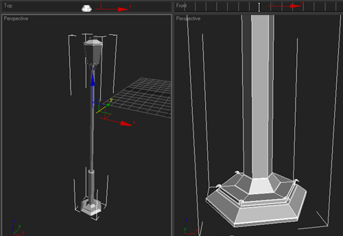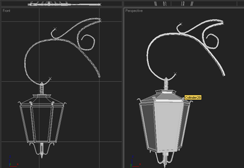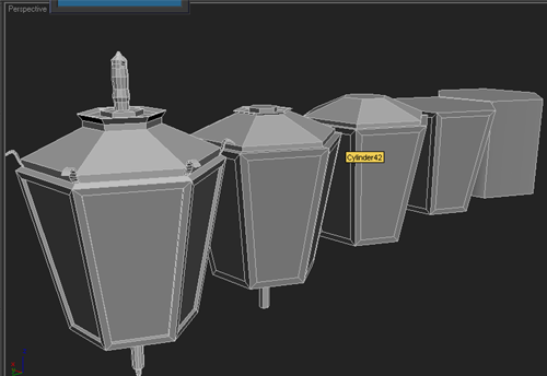 |  | 28~ Lambalarımızı oluşturmak için 6gen çiziyoruz ve alt kısmındakı noktaları "scale" ile küçültüyoruz 29~ Yandaki yüzeyleri seçip "inset" uyguluyoruz ve bunu yaparken "by polygon" işaretliyoruz 30~ "inset" yaptığımız yüzeyleri içeriye "extrude" ediyoruz 31~ Tepe ve alt kısmınıda "extrude" ve "inset" kullanarak şekillendiriyoruz 32~ Lambamıza detay katmak için line ile çizdiğimiz parçalarıda lambayla birleştiriyoruz |