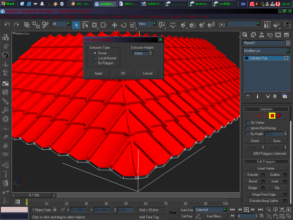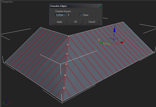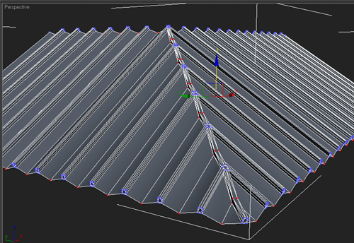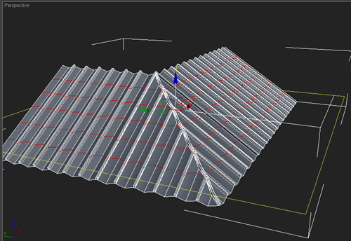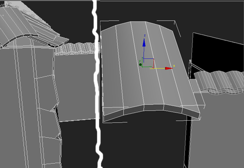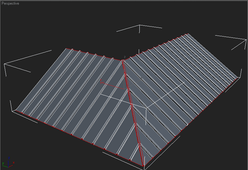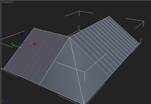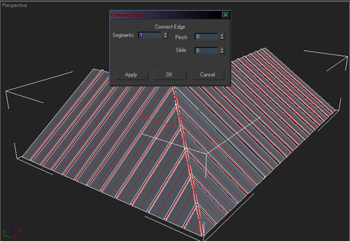 | 1~ İlk önce çatımızın düz olan kısımlarını seçiyoruz ve "connect" ile birleştiriyoruz bunu yaparken facelerin aralıgının kiremit büyüklüğünde olmasına dikkat ediyoruz |