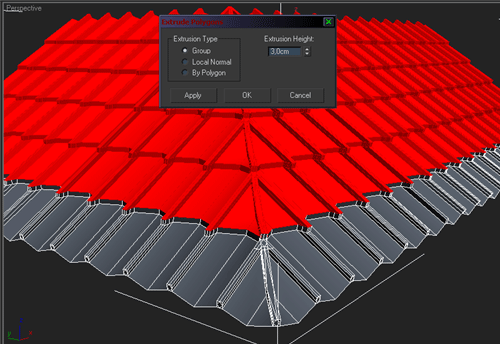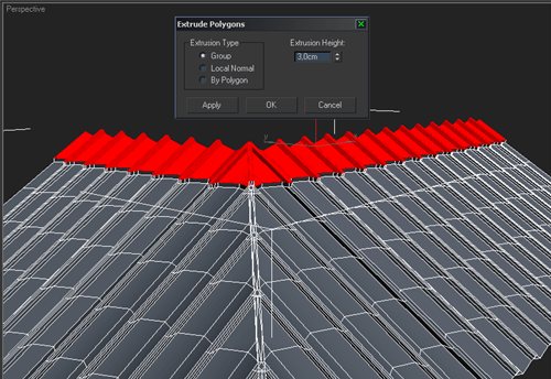 | 8~ Tepeden başlayarak kademe kademe aşağıya kadar parcaları extrude edelim |