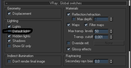 |  | 1~ "Defult lights"ı kapatıyoruz ve sahnede bizim belirlediğimiz ışıklar dışında ışık bulundurmamış oluyoruz |