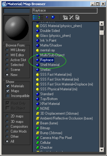 |  | Materyal editorümüzü açıp (M) Standart yazan butona tıklayarak "Raytrace´i" işaretliyoruz. |
