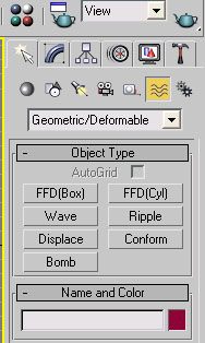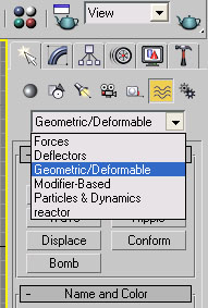 Create panelinin içinde Space Warp ikonuna tıklıyoruz, hemen alttaki siyah oka basınca çıkan listeden Geometric/Deformable