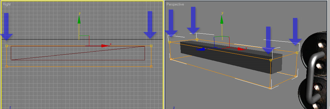 bu şekilde noktalarrla oynayarak, left penceresinde üsteki noktaları seçip aşağı doğru çubuğumuza göre indiririz.