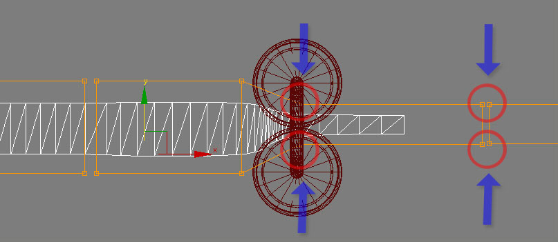 Bu aşamadan sonra silindirlerin ortasına koyduğumuz FFD(Box) ın  control points alt nesnesini seçerek şekildeki gibi