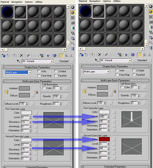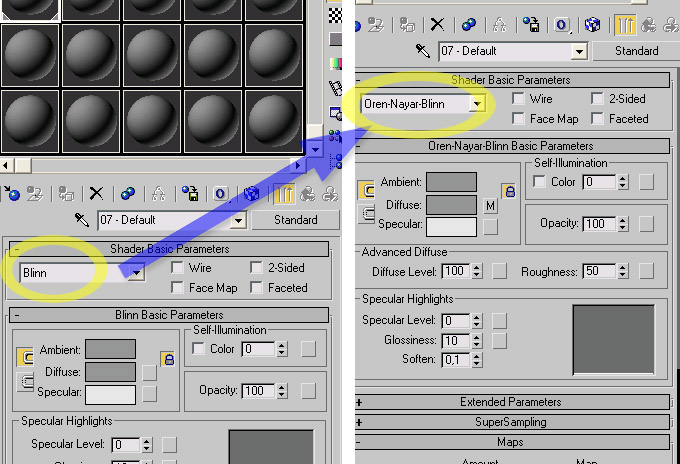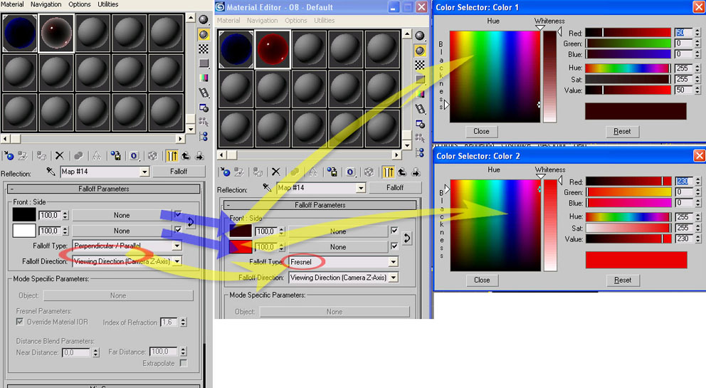 Araba boyaları cilalı olduğundan bizimde arabamızın boyasını cilalamak gerekiyor. bunun için, maps başlığı altındaki reflections kısmıdaki 100 rakamını 70 yapıyor ve none tuşuna basıyoruz ve açılan pencereden Fallof çift tıklıyoruz,