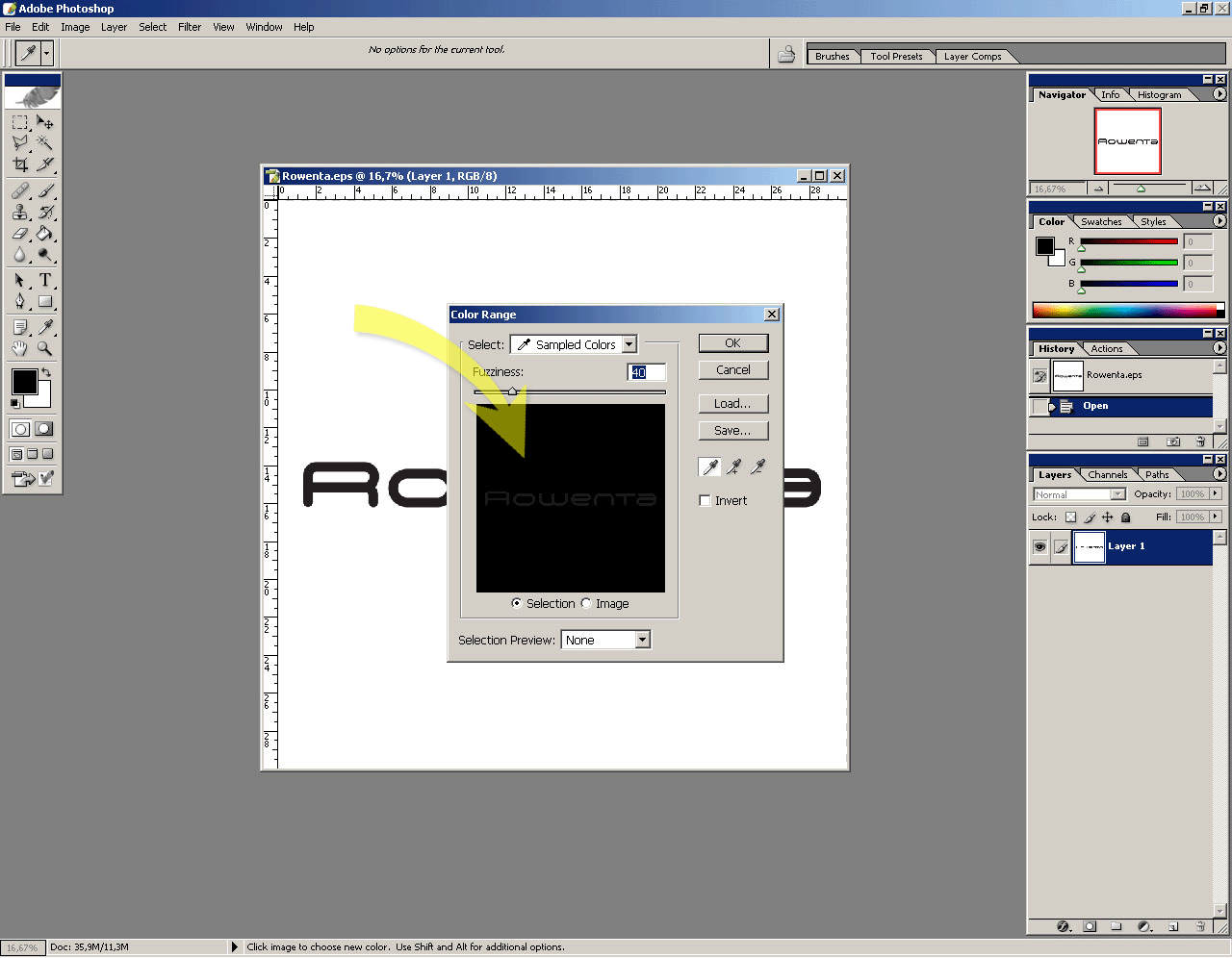 Dosyayı açtıktan sonra "Select -> Color Range..." bölümüne geçiyoruz.